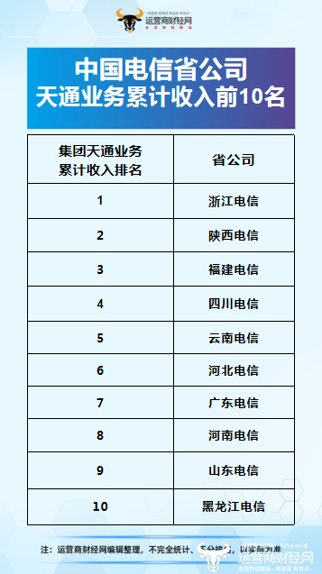 中国电信卫星业务累计收入前十省公司是这几家 浙江陕西福建居前三
